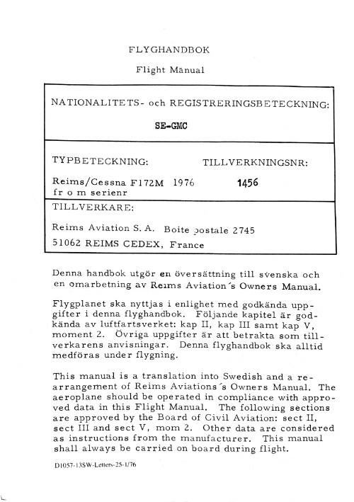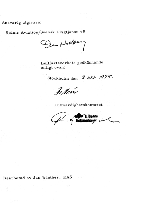 - Om denna flyghandbok upphittas, var vänlig sänd in den till Luftfartsverket, 161 89 Bromma.